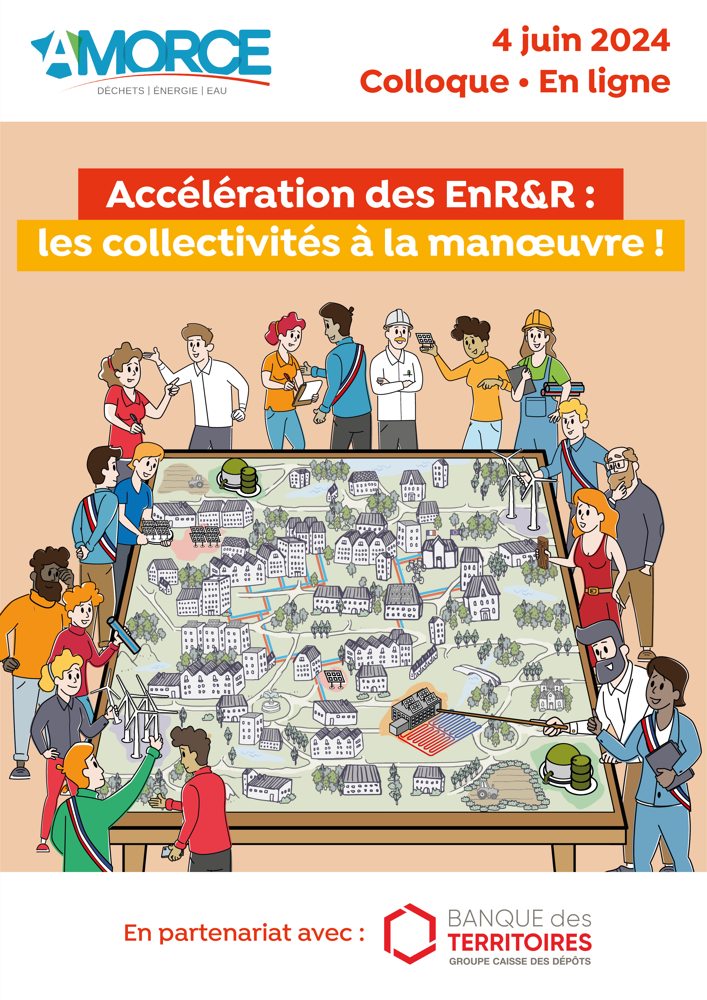 Dans ce contexte où les territoires sont amenés à jouer un rôle majeur pour concrétiser une transition énergétique résiliente et durable, AMORCE organise un e-colloque Énergie dédié à l’accélération du développement des ENR&R, le mardi 4 juin 2024 en ligne et en partenariat avec la Banque des Territoires : Inscriptions ICI
