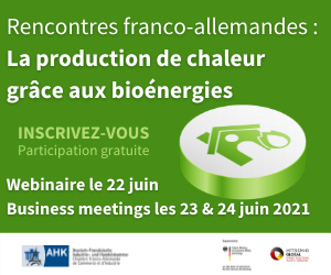 AMORCE participera au prochain webinaire de la Chambre Franco-Allemande de Commerce et d’Industrie (CFACI) mardi 22 juin 2021 sur la production de chaleur renouvelable grâce à la bioénergie en France et en Allemagne. Des experts apporteront un regard transfrontalier sur les enjeux de la chaleur renouvelable, au travers d’un panorama de la filière dans les deux pays (réseaux de chaleur, technologies mises en place, dispositifs de soutien) et de projets innovants. Découvrez également huit entreprises allemandes actives dans la filière qui souhaitent échanger avec des partenaires commerciaux potentiels. Elles sont spécialisées dans la méthanisation agricole, le traitement des déchets, la cogénération ou encore le briquetage de déchets combustibles et se présenteront lors du webinaire. Sélectionnez celle·s qui représente·nt une opportunité de développement pour votre organisation et demandez un RDV virtuel individuel entre les 22 et 24 juin.