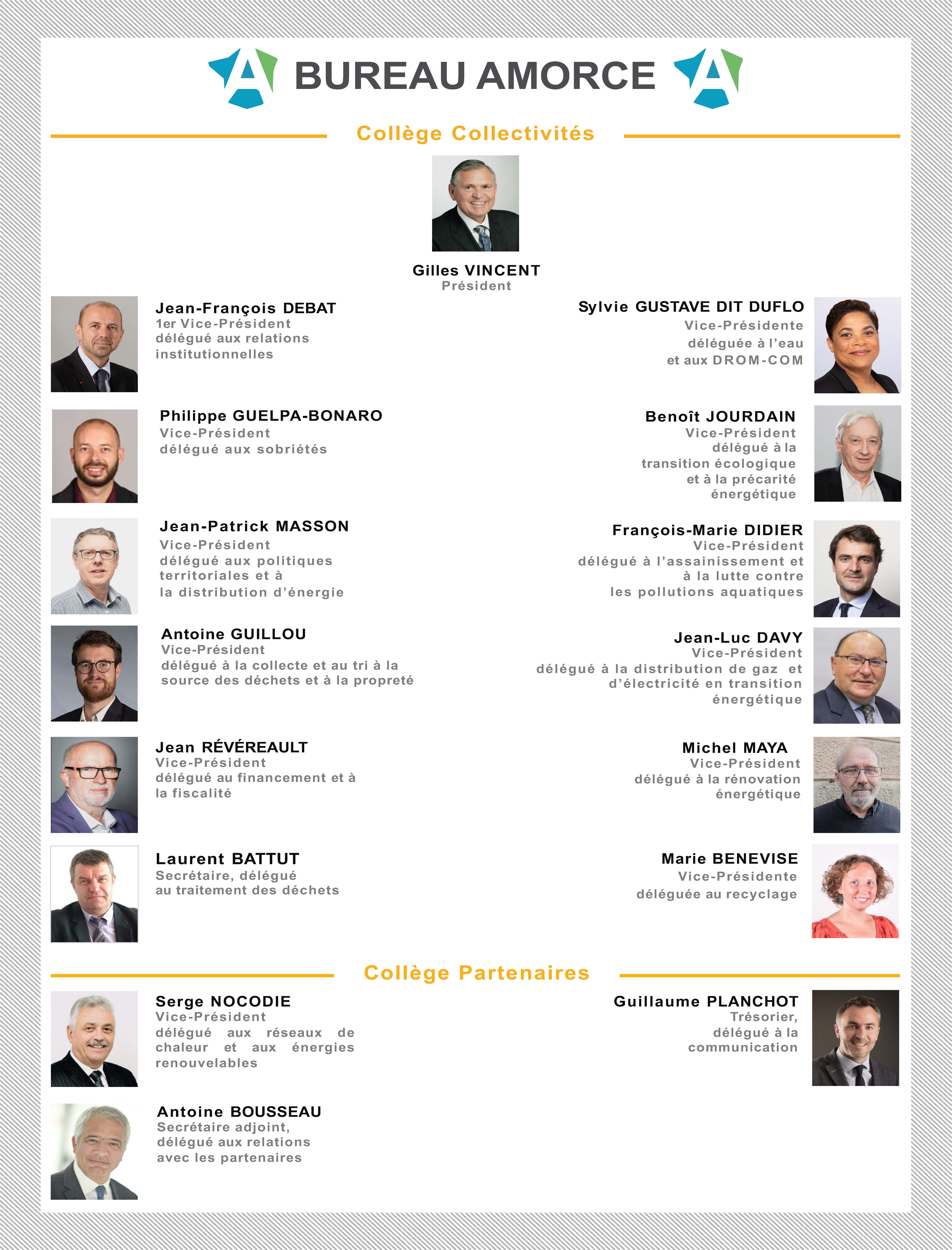 La gouvernance d’AMORCE repose sur un Bureau renouvelé de 17 membres au total :