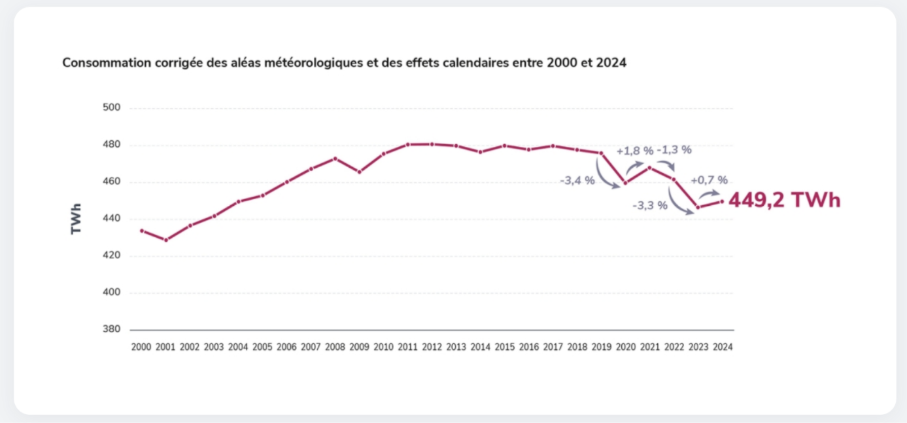 Depuis 2024, RTE constate un arrêt net de la baisse des consommations, et même une légère reprise liée à la normalisation des prix. On ne peut donc pas projeter cette baisse sur le long terme.